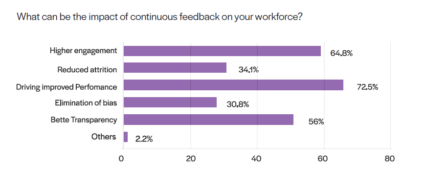 It was found that by adopting the practice of continuous feedback, attrition rates are bound to come down. Thus creating a productive, engaged, and genuinely empowered workforce.