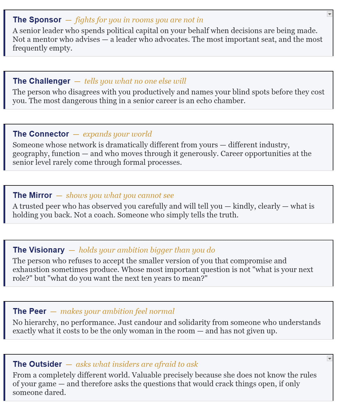 Think of it as governance for your career. Every serious organisation has a board — people with different expertise, different networks, different kinds of power — whose collective purpose is to ensure the organisation reaches its potential. Your career deserves the same architecture.