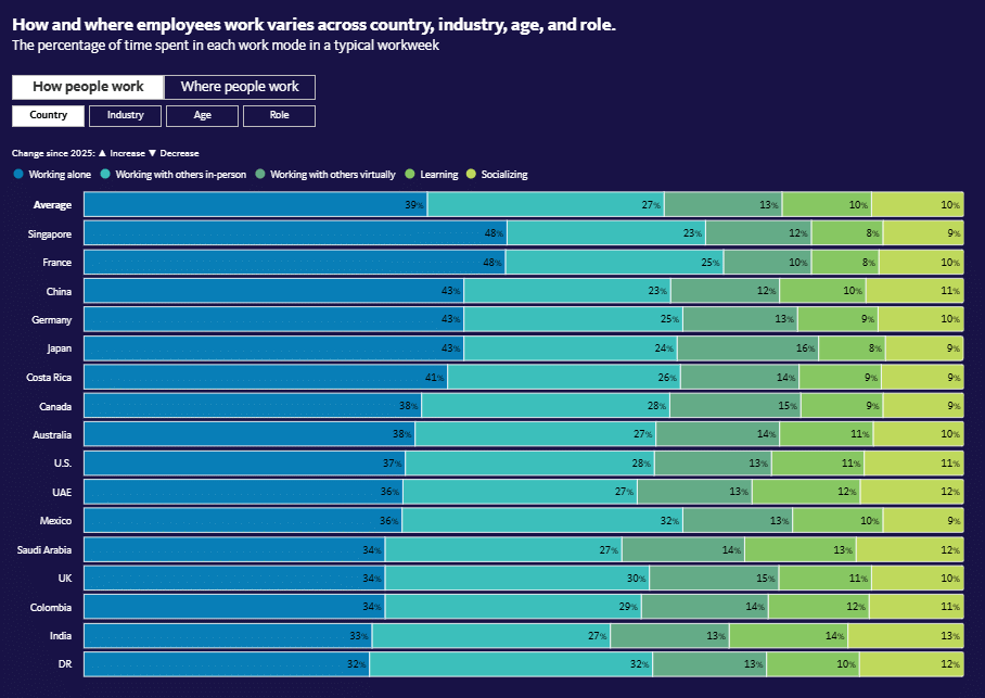 The report titled, '2026 Global Workplace Survey', covering over 16,400 office workers across 16 countries, finds that employees who use AI most are also the most collaborative and engaged with their teams.