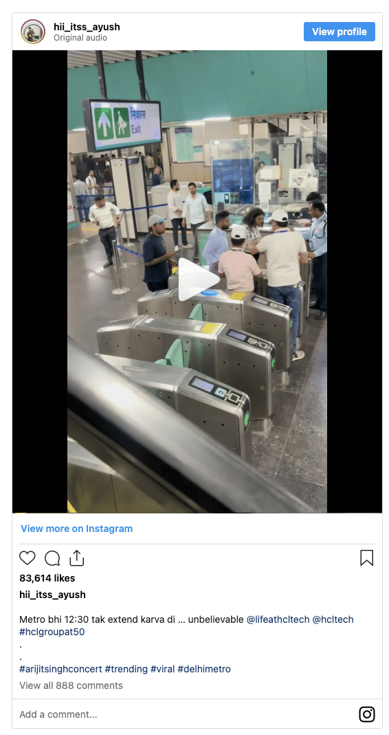 The employee video quickly gained traction online, showing staff members entering the Delhi Metro system using their company IDs after the concert ended.